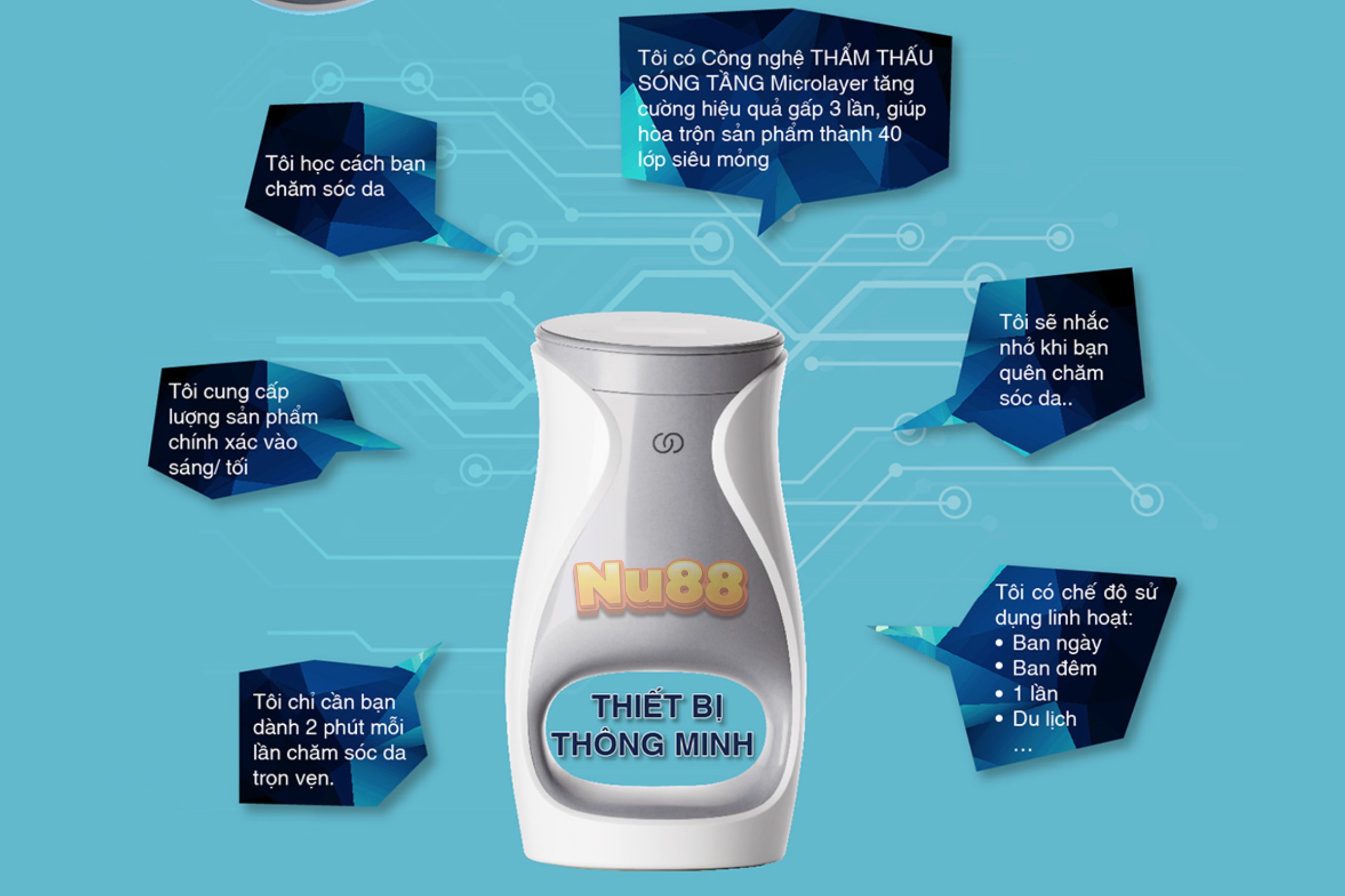 giúp phân bổ các tinh chất dưỡng da thành nhiều lớp mỏng, cho phép da hấp thụ dưỡng chất hiệu quả hơn. Điều này tạo ra hiệu quả chăm sóc da tối ưu hơn so với việc áp dụng sản phẩm bằng tay thông thường. Cung cấp giải pháp chăm sóc da chống lão hóa tùy chỉnh, với mục tiêu mang lại làn da tươi trẻ và khỏe mạnh. AgeLOC Me đã nhận được sự công nhận từ người tiêu dùng trên khắp thế giới về hiệu quả và độ an toàn khi sử dụng.