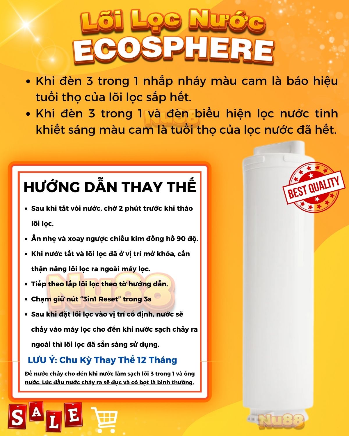 👉 Để mua lõi lọc nước Ecosphere chính hãng tại Nu88, bạn có thể liên hệ qua hotline 083.551.9999 hoặc đặt hàng trực tuyến trên website của chúng tôi.