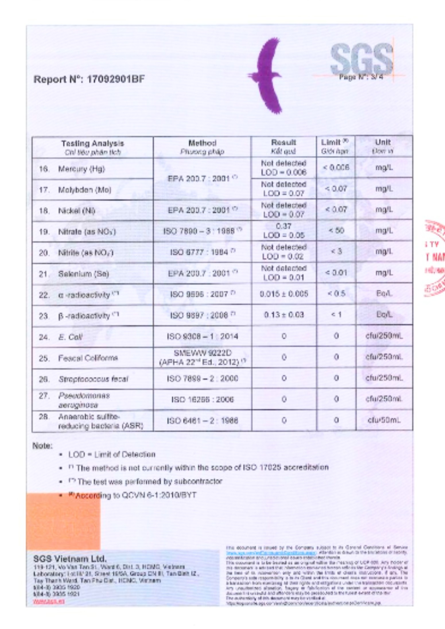 - 01 năm hoặc 5,200 lít nước, tùy thời điểm nào đến trước.