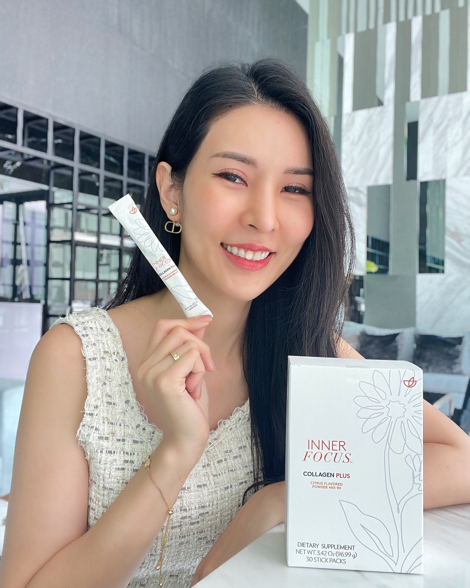 Inner Focus Collagen Plus là sản phẩm thực phẩm bảo vệ sức khỏe dạng bột, được phát triển bởi công ty Nu Skin nhằm hỗ trợ cải thiện làn da và sức khỏe cho người tiêu dùng. Thành phần chính của sản phẩm là 2500mg collagen peptide - một loại collagen dễ hấp thụ, giúp hỗ trợ tái tạo làn da, giảm nếp nhăn và tăng độ đàn hồi cho da. Ngoài ra, Inner Focus Collagen Plus còn bổ sung các dưỡng chất quan trọng khác như lutein, phytoceramides, vitamin C... nhằm hỗ trợ bảo vệ da khỏe mạnh, ngăn ngừa lão hóa. Sản phẩm được sản xuất trên dây chuyền hiện đại của Nu Skin với công thức độc quyền giúp tối ưu hóa khả năng hấp thụ các dưỡng chất. Inner Focus Collagen Plus phù hợp với người trưởng thành muốn bổ sung collagen, cải thiện làn da và nâng cao sức khỏe.