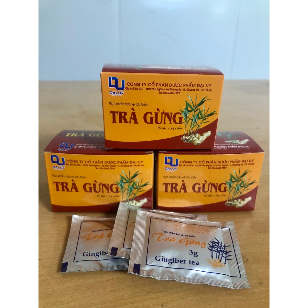 Trà Gừng Đại Uy Hộp 10 túi - Hỗ trợ làm ấm bụng, giảm đầy hơi khó tiêu, buồn nôn.